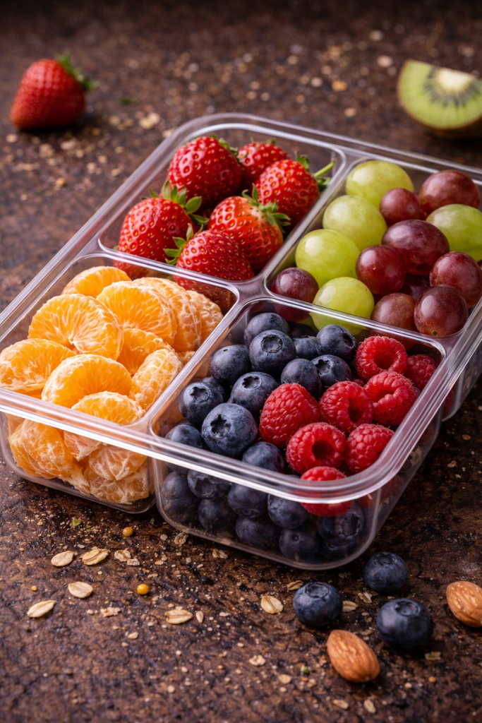 Opt for a mix of seasonal fruits like berries, melons, apples, grapes, and oranges to accommodate a wide range of tastes.